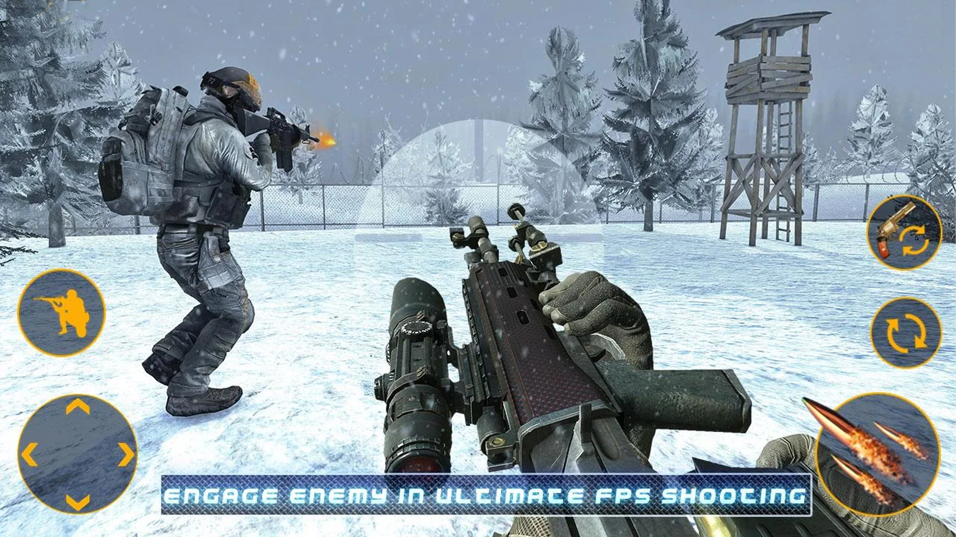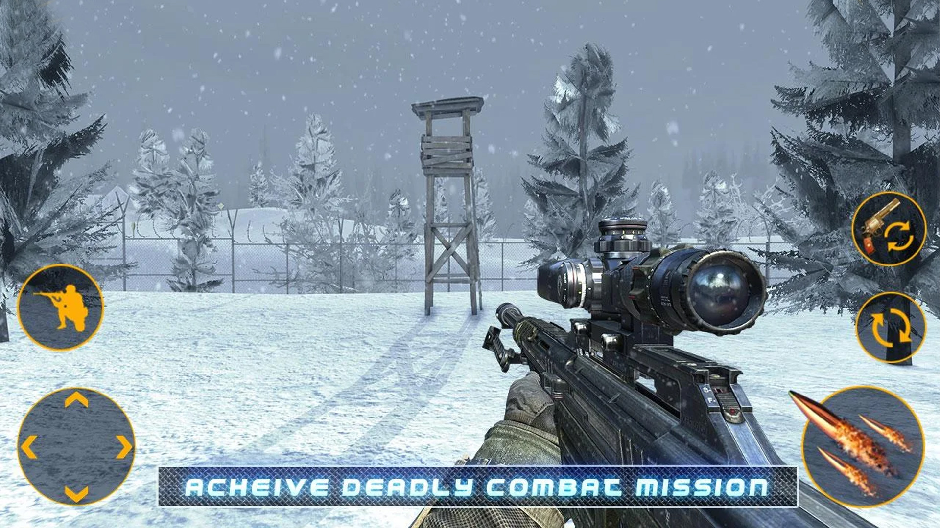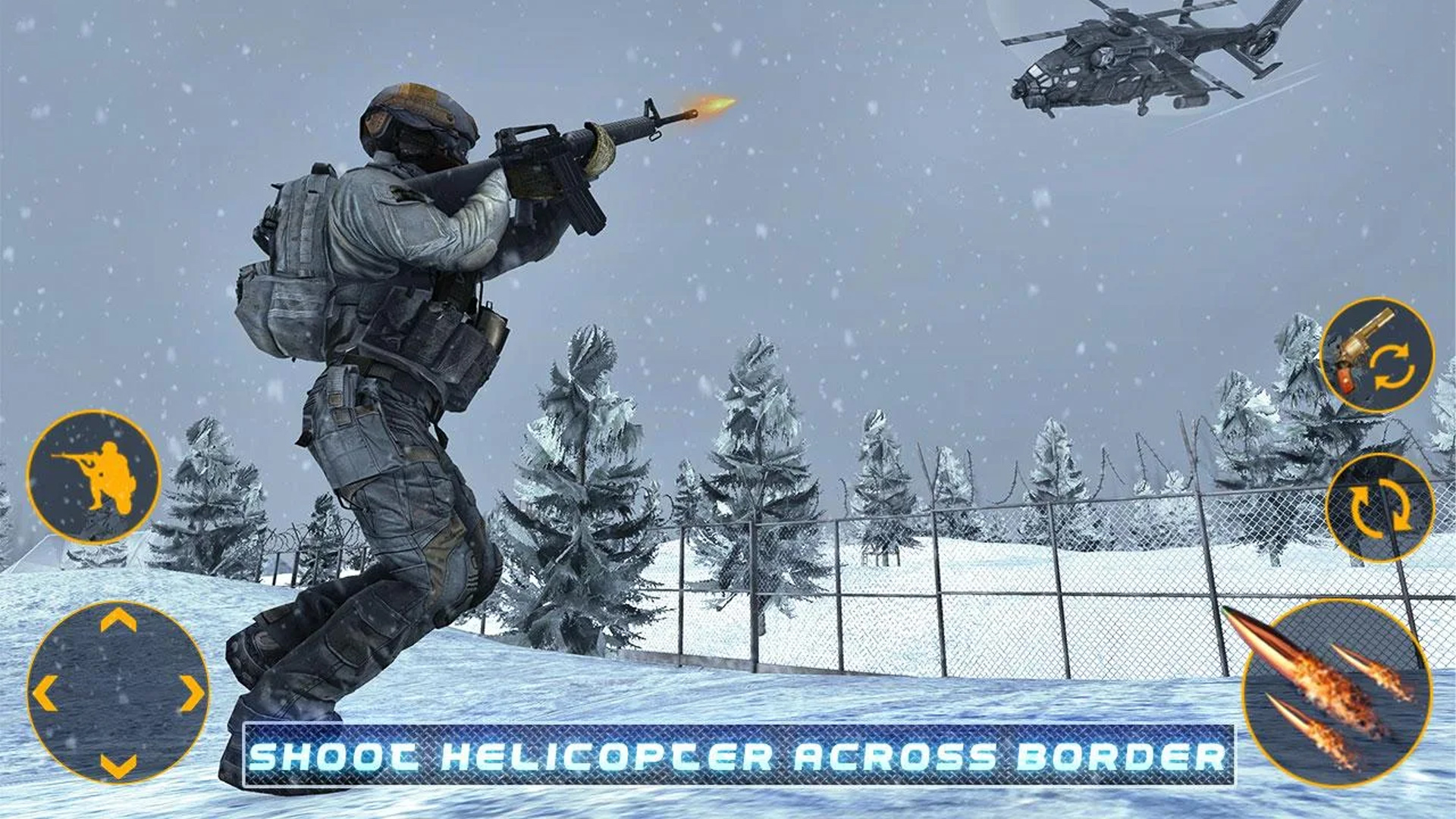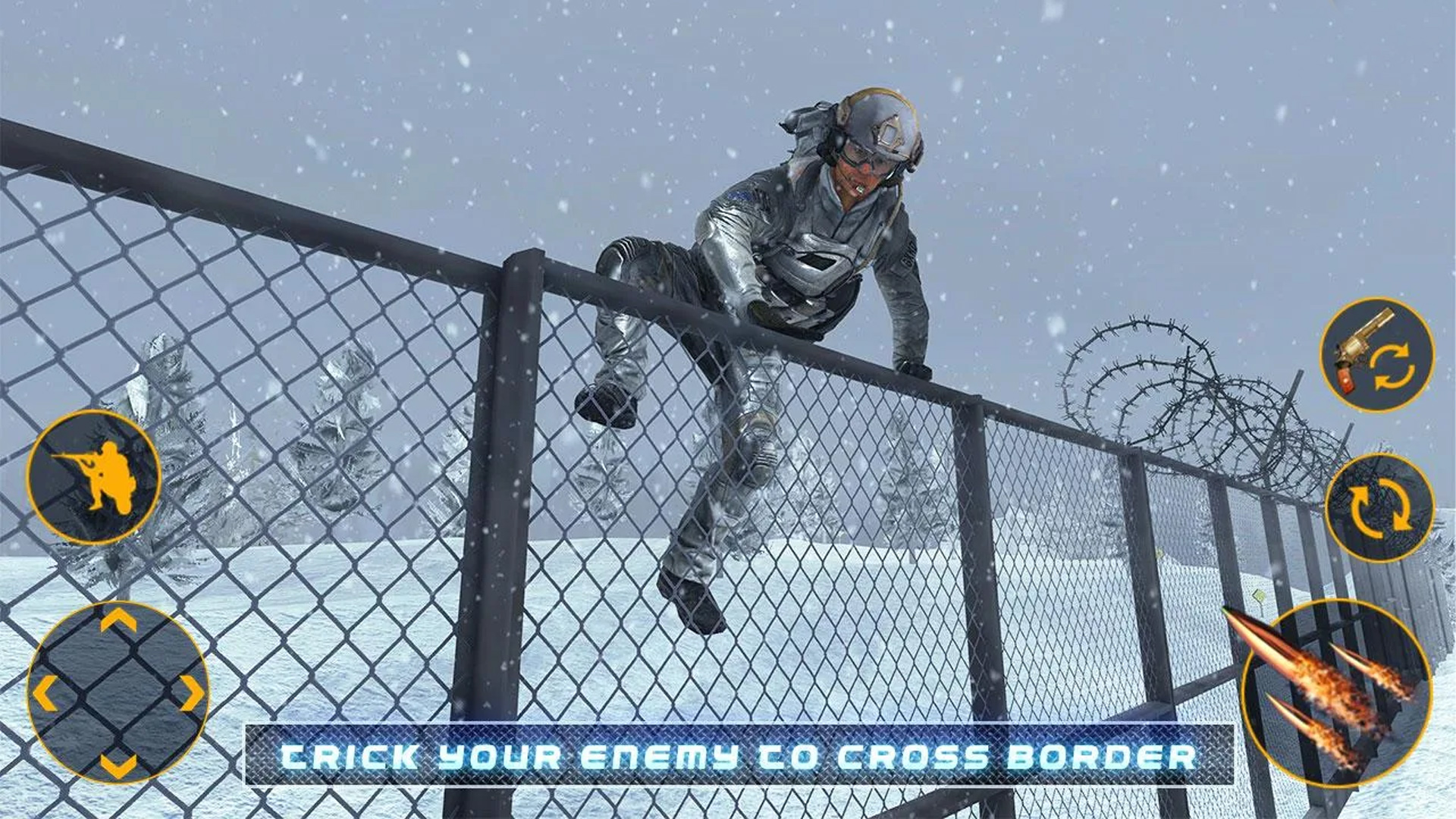 Take an active part in improving your combat fighting skills with different sniper gun weapons in an unknown, exciting arena set in a winter landscape. Play without stopping in this top FPS game until all enemies are strike out of game. You must upgrade the radar map and health to become stronger in this gun game to cross fence border. Play as a well-trained elite member of a special tactical army strategy commando team ready to cross the border in this 3D shooting game. Equip yourself with advance guns and stun the enemy. Navigate through secret unknown roads by avoiding tanks and helicopter across the enemy arena to destroy their evil syndicate plans that stands in the way of a peaceful world. Mission Objectives: 1. Jump down a helicopter using a parachute and land on the appointed spot 2. Complete Deadly Intelligence Mission 3. Engage Enemy In The Ultimate FPS Army Shooter Game 4. Trick Your Enemy 5. Cross Enemy State Boarder Line Game Features: - Exciting map with realistic combat environment - HD graphics & epic game story - Amazing Fighting Effects - Action rich background music and sound effects - Immersive game objectives with unique tasks - Advance armoire of powerful weapons - Smooth and easy to handle control