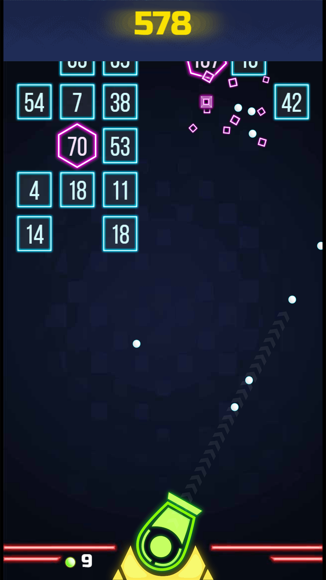Action-rich Arcade action inspired by an alltime classic! Break as many bricks as possible and achieve a new high score. Shoot the Bricks in proper angle to break more bricks and target power-ups to gain better scores. Features: - Endless Gameplay: How long will you surivive? - Mesmerizing Neon Colors - Perfect Stress Killer Gameplay - Incredible Power Ups - Super Speed - Mega Shot - Tile Freeze