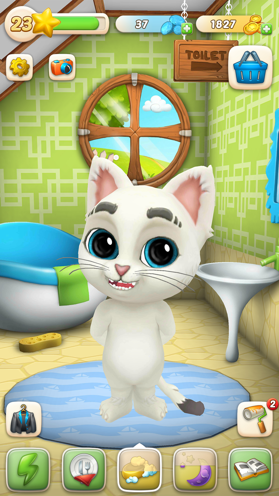 Meet your new talking friend: Oscar the Cat, the sweetest virtual cat app! He's white, he's fluffy and absolutely adorable! Oscar the Cat - Virtual Pet is a new talking cat game ready to win your heart! This virtual cat app is a real game changer! If you like talking animals app and virtual pet games, play cat games untill you get my virtual cat to be your best friend. Download talking cat game and see why this virtual cat app is so special! OSCAR THE CAT - VIRTUAL PET FEATURES - AWESOME GRAPHICS with super cute animations - FUNNY POTIONS - buy your talking pet a potion and see what he'll do (Spoiler alert: it will be hilarious!) - COLLECT STICKERS, put them in a sticker album AND - WIN AWARDS for every completed page in the album or a rare sticker of a talking pet cat you collected - CAT COLORING PAGES – adorable my talking cat coloring book with lots of cute drawings - DRESS UP – buy home decorations and clothes for your talking pet - DAILY BONUS – come back every day to play virtual cat app and receive daily bonuses - DAILY MISSIONS – complete daily missions with your virtual pet and win lots of coins and diamonds - SPIN THE WHEEL and try your luck: you can win some pretty cool gifts such as rare stickers, lots of coins or cool outfits for you talking animal - MINI GAMES – earn coins while you play with your talking cat